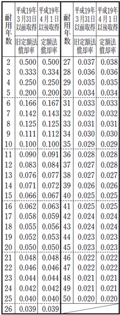また、耐用年数に基づく償却率は、以下のように定められています。